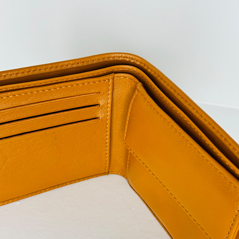 Crafted with meticulous Italian craftsmanship, the PRADA bifold wallet in rich cognac leather combines luxury and practicality in one sleek accessory. Featuring multiple card slots, a hidden ID window, classic bill compartments, and exquisite contrasting stitching, this wallet offers refined organization with timeless design. Perfect for the discerning gentleman who values heritage style and premium detailing.