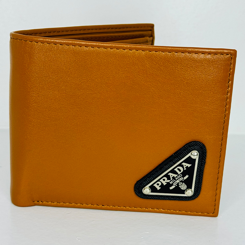 PRADA Bifold Men’s Leather Wallet – Luxurious Cognac Elegance