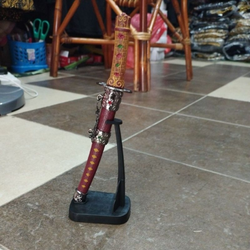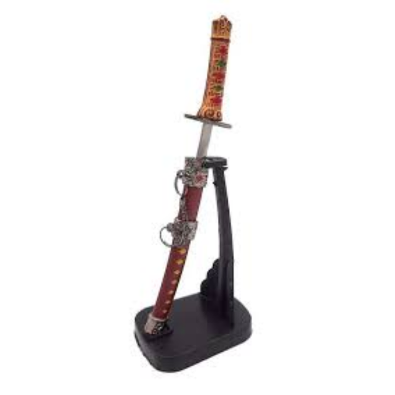 Stunning Samurai S w o r d as aLetter Opener. Ideal for the office or home. Size: approx. 17 cm (with sheath).The blade and chain are made of metal, the rest made of plastic.