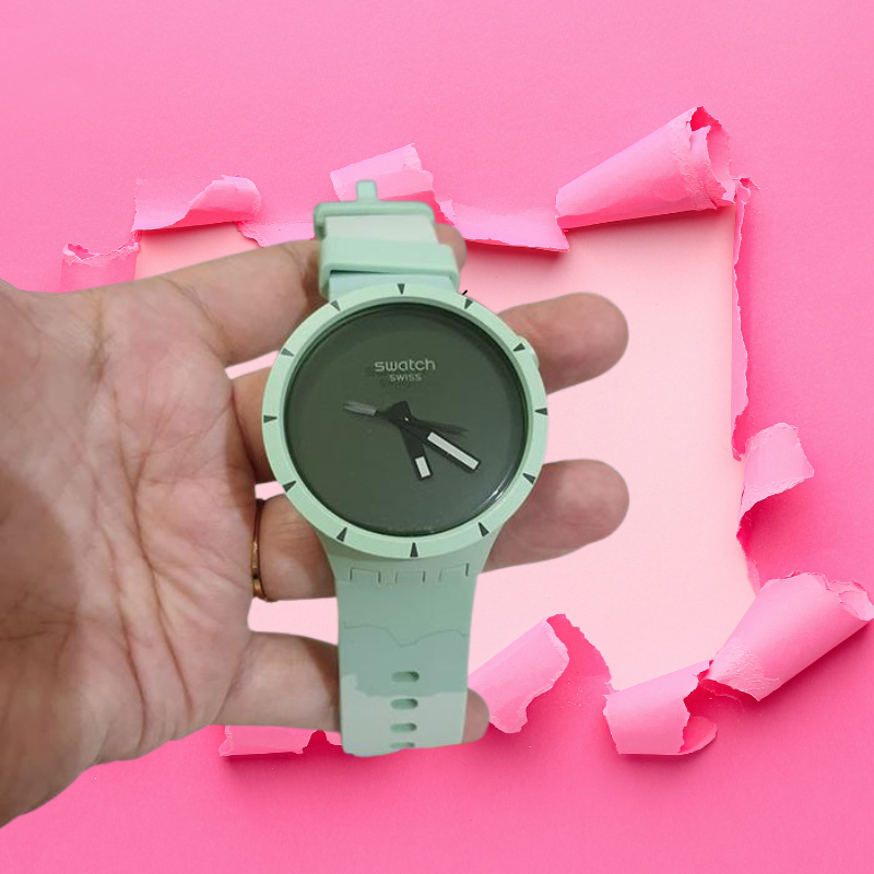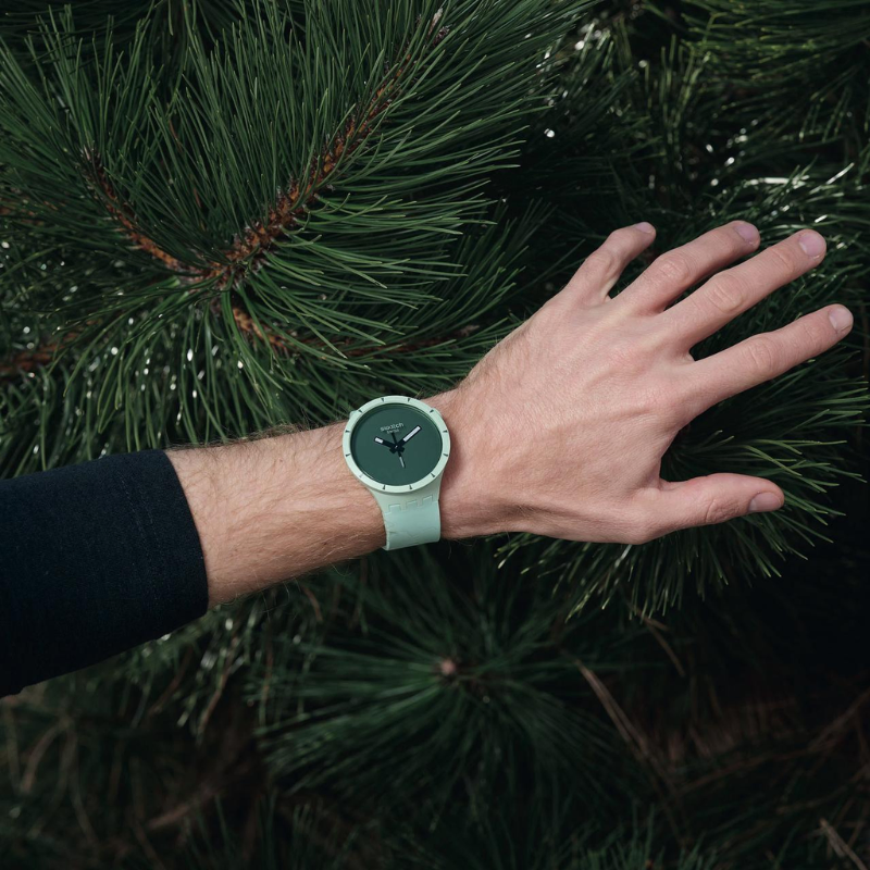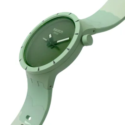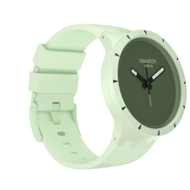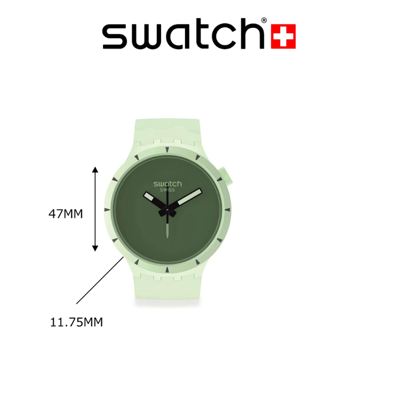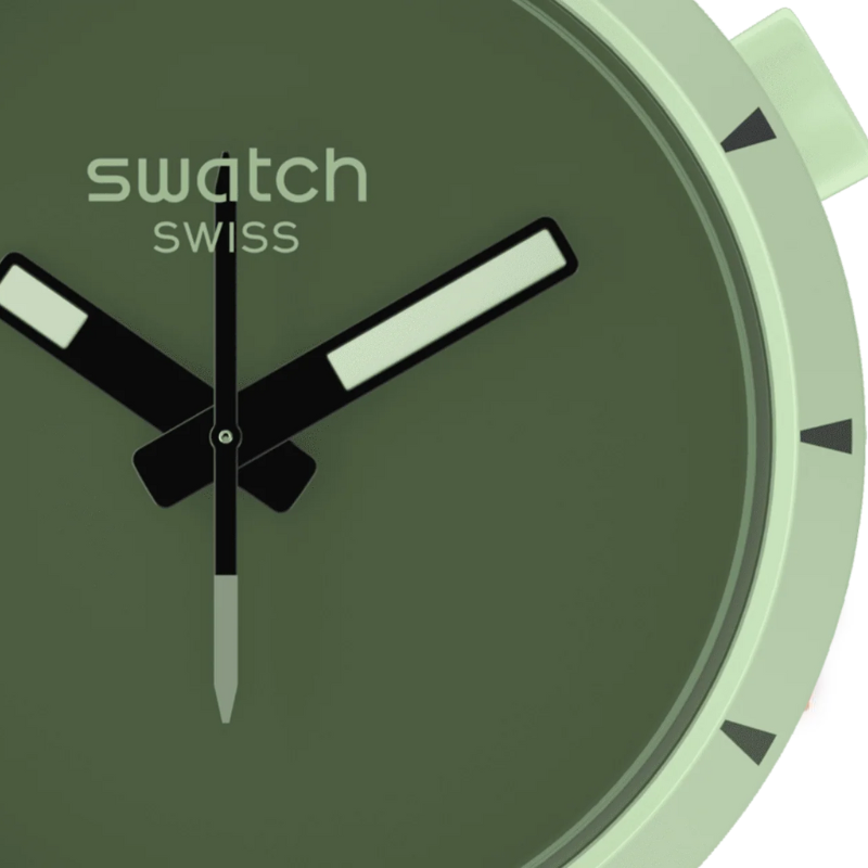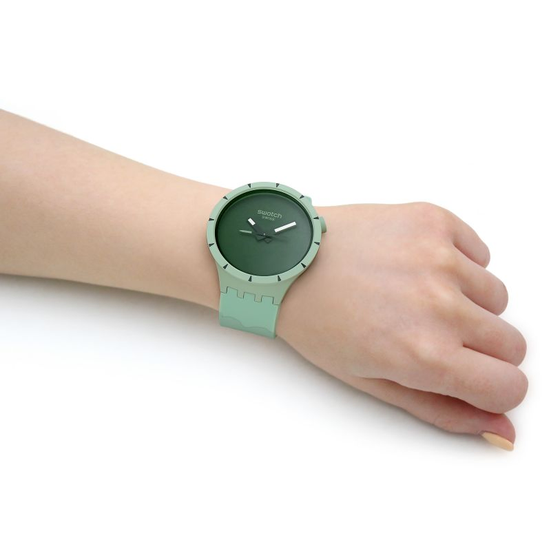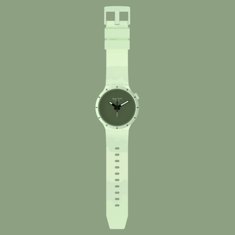 This BIG BOLDBIOCERAMIC oversized watch features a solid matte green silicone strap withlight green print and solid matte green BIOCERAMIC case and bezel. The soliddark green dial accentuates the white superlight feature on the black hands.Inspired by a compass needle, the second hand amplifies the sense of adventure.