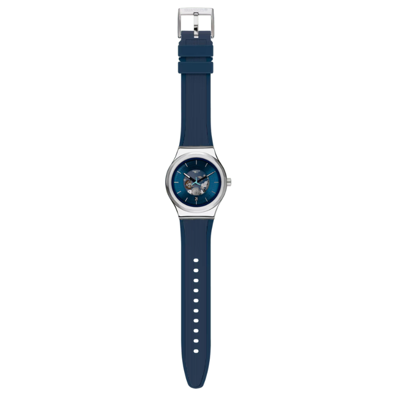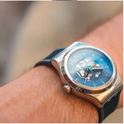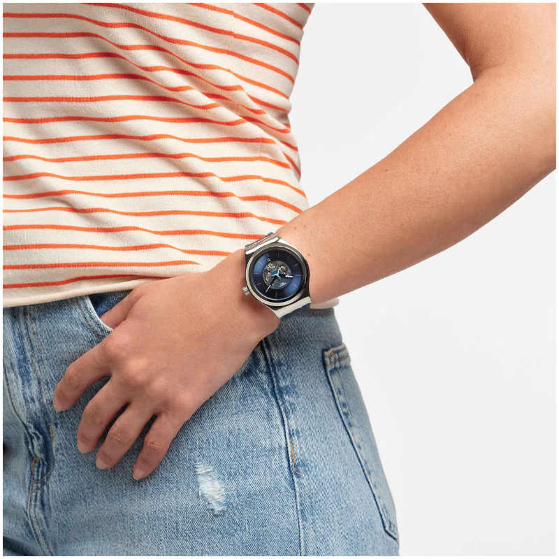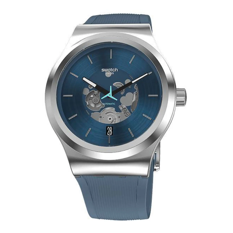 Discover SwatchSISTEM51, the revolutionary mechanical watch created in 2013 with just 51components and a single screw. Featuring a transparent case front and back, a unique three-winged seconds hand in dynamic turquoise blue, and a high-performance Nivachron spiral for superior magnetic resistance and precision. A perfect blend of innovation, design, and everyday durability.
