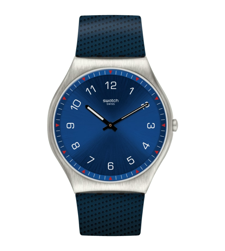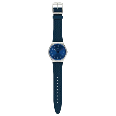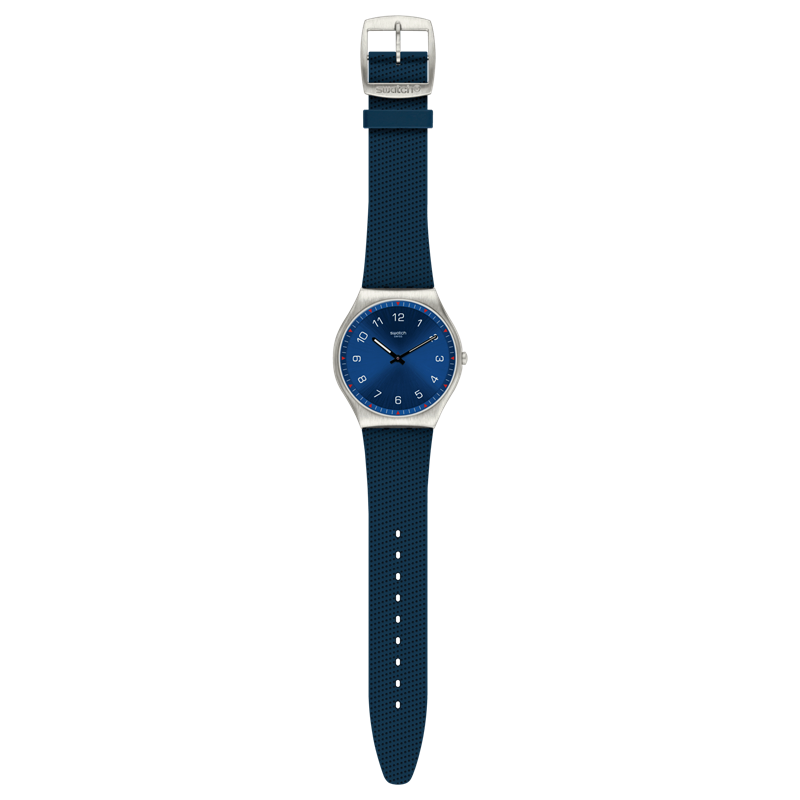 SKIN NAVY in classic dark navy blue has a textured rubber strap. The dark blue