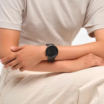 With bio-ceramic fora silky touch, this fully bio-sourced beauty reveals a visible movement. It's abold black choice that's innovation at its best.