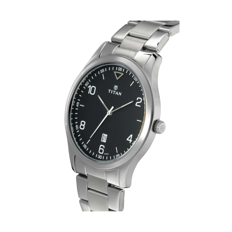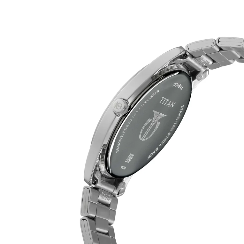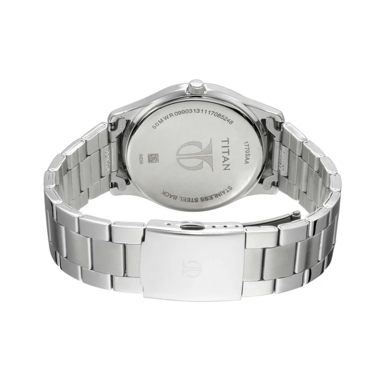 Upgrade your everyday style with the Titan 1770SM02 men’swatch, featuring a sleek black dial and a durable stainless steel strap for amodern, refined look. Powered by precise quartz movement with a date displayand 50m water resistance, this elegant timepiece offers reliability, comfort,and versatility for office and casual wear.