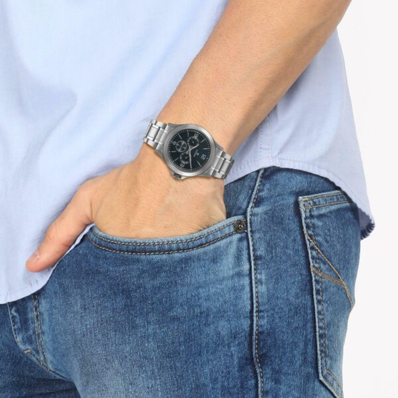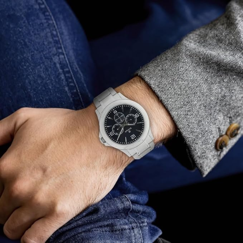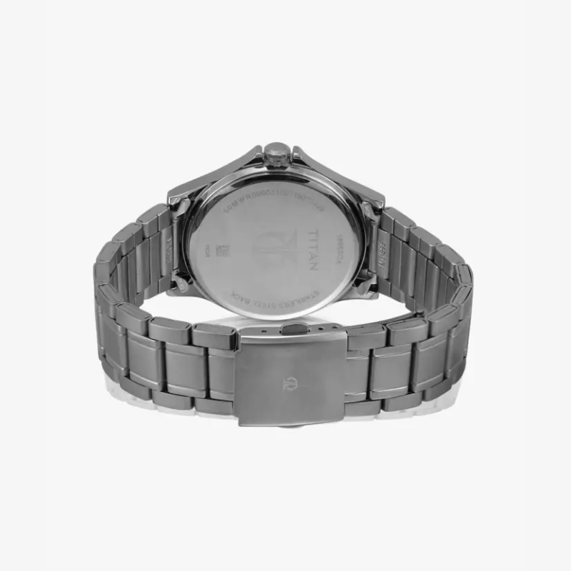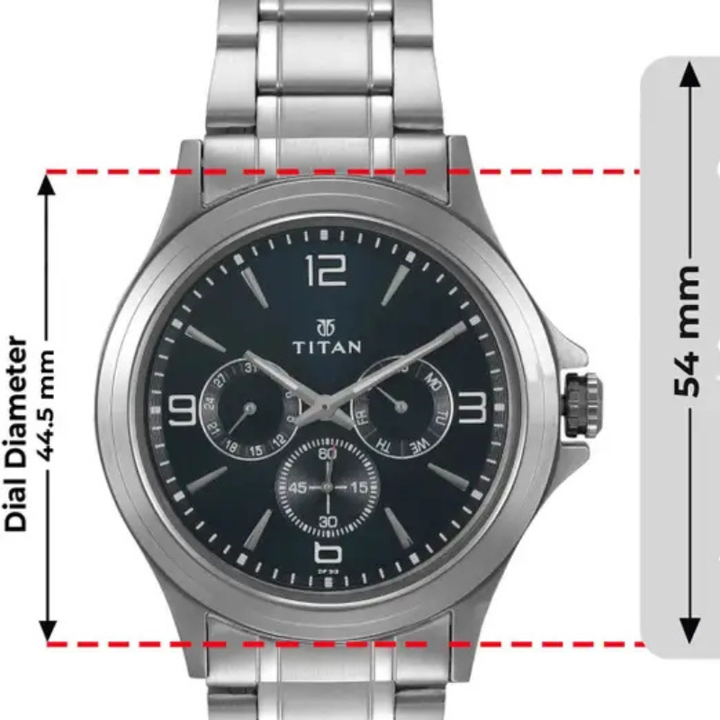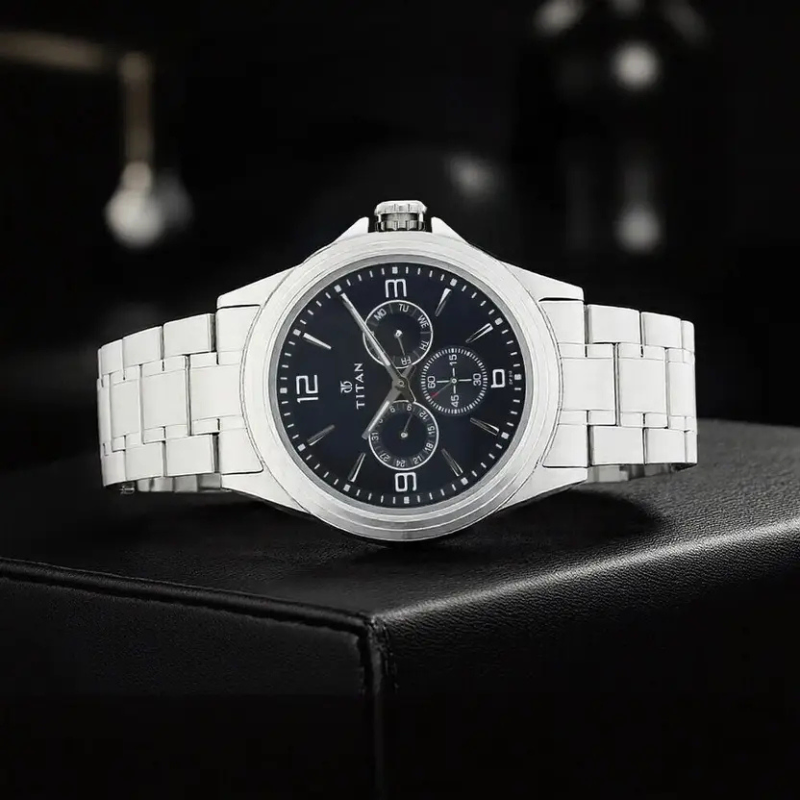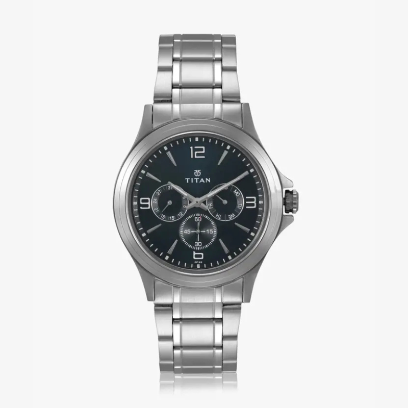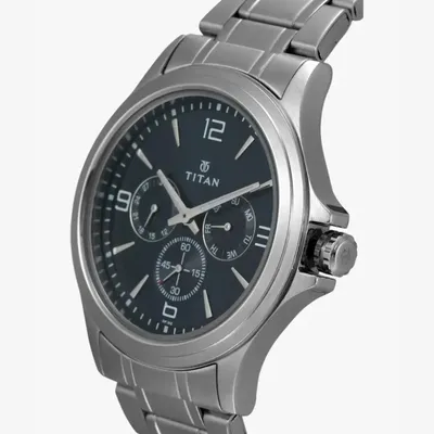The Titan 1698SM02Men's Chronograph Watch offers sporty elegance, accurate quartz performance, and long-lasting everyday style with its deep blue dial with useful sub-dials and polished stainless steel case and band.
