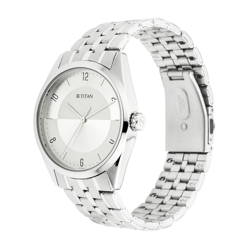 Sleek and modern, the Titan 1729SM06 men’s watch features arefined silver dial with a stainless steel bracelet for a clean, sophisticatedlook. Designed with reliable quartz movement and 50m water resistance, itoffers lasting durability, precision, and effortless style for daily wear andformal occasions.