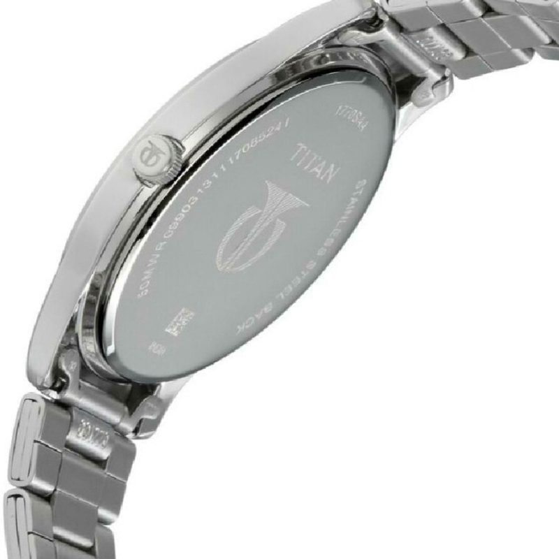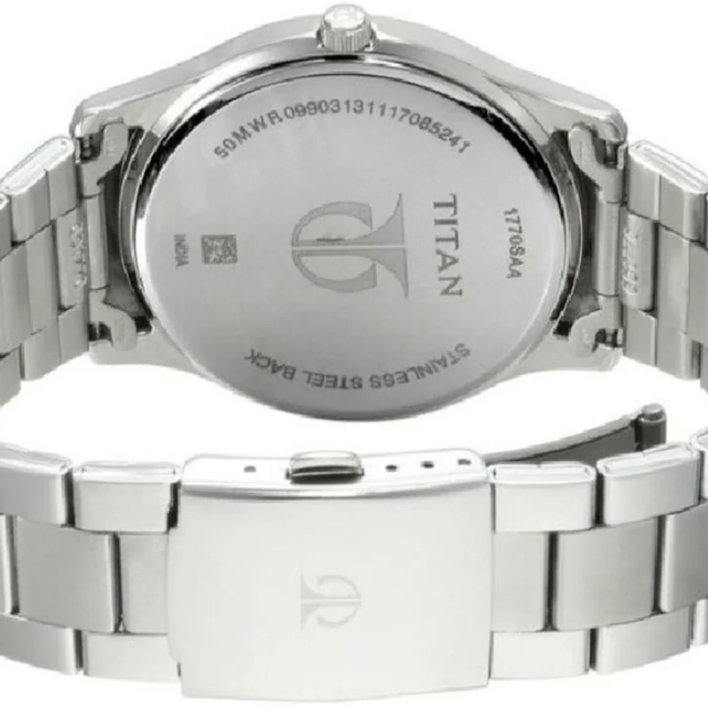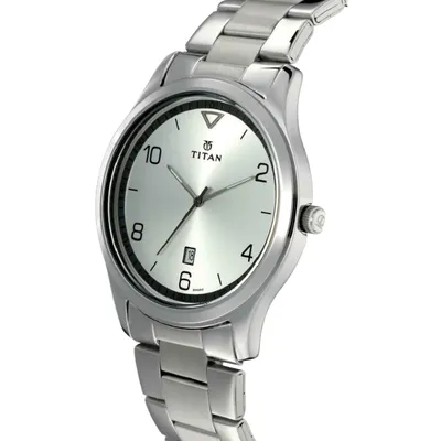 Upgrade your everyday style with this elegant Titan men’sanalog watch, crafted with a durable stainless steel strap and a clean silverdial for a refined look. Featuring easy-to-read numerals, a practical datewindow, and reliable quartz movement, this watch delivers the perfect blend ofsophistication, comfort, and precision for any occasion.