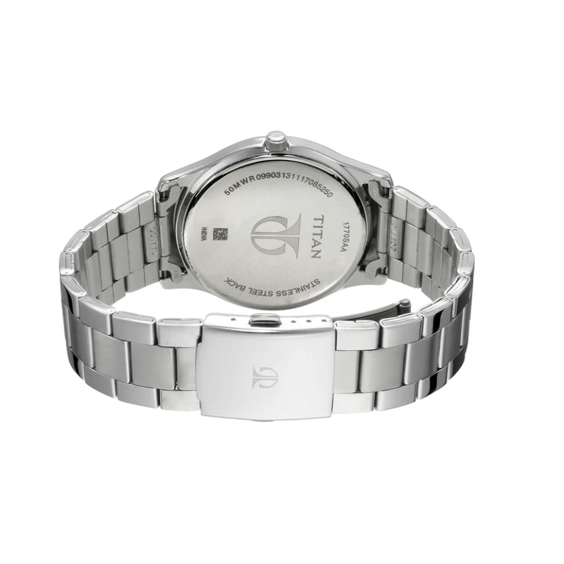 Upgrade your look with the Titan 1770SM03 men’s watch,featuring a stylish blue dial and durable stainless steel strap. Powered byprecise quartz movement with a date display and 50m water resistance, this eleganttimepiece is perfect for office wear, casual outings, and modern everydaystyle.