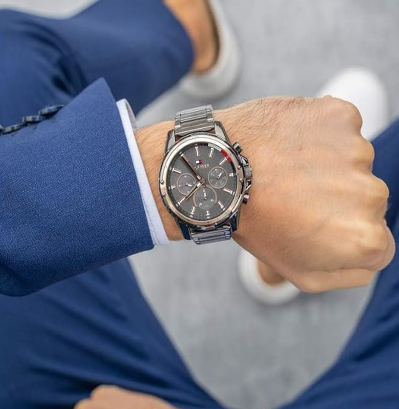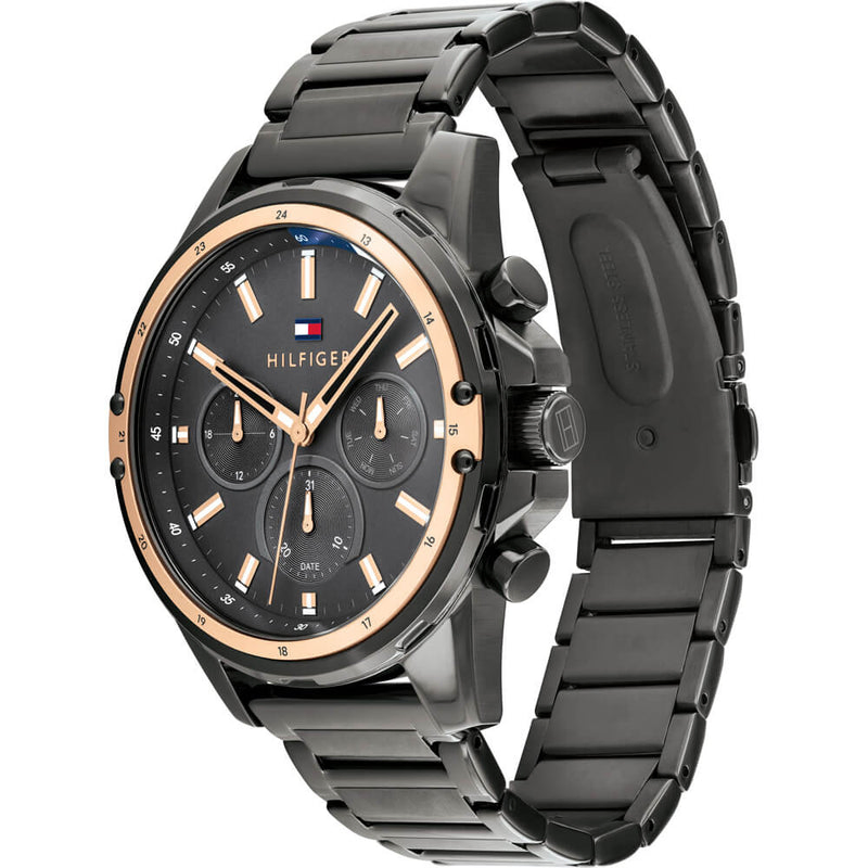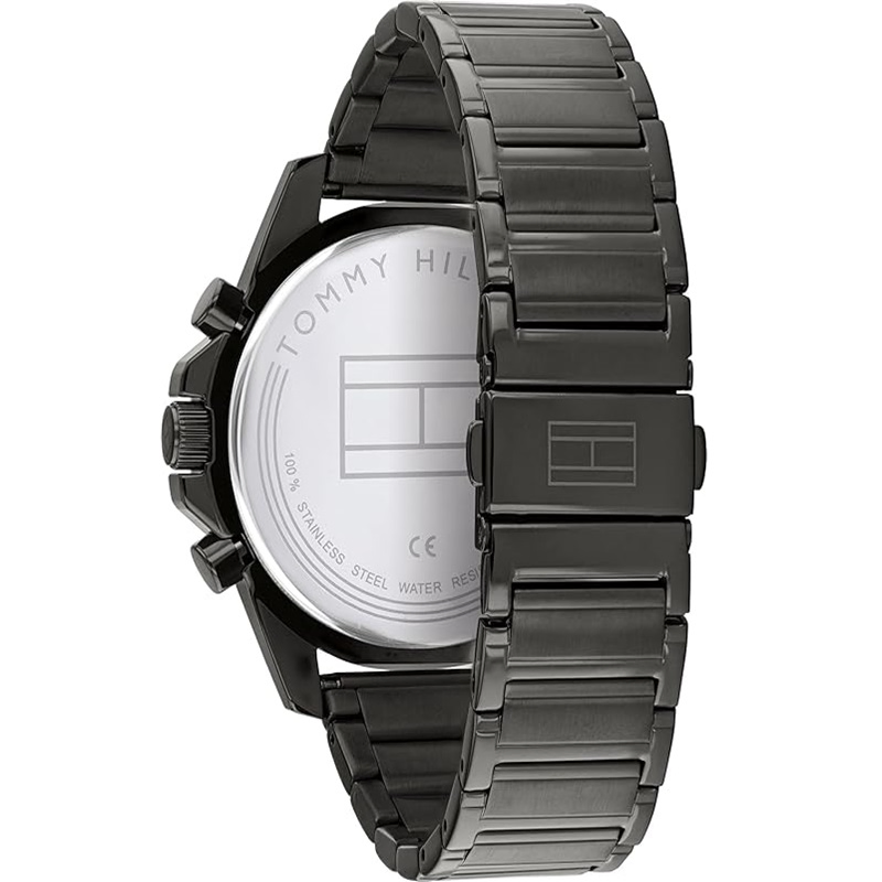 Touches of Tommy. Branded stripe on all reflectors along witha red sweep give a pop of color. Tommy flag at 12:00. Center link brushed andouter polished links provide a subtle contrast. 44mm and multi function, thiscollection is a statement maker