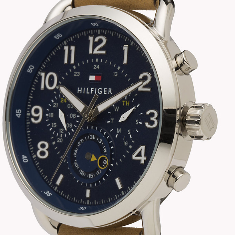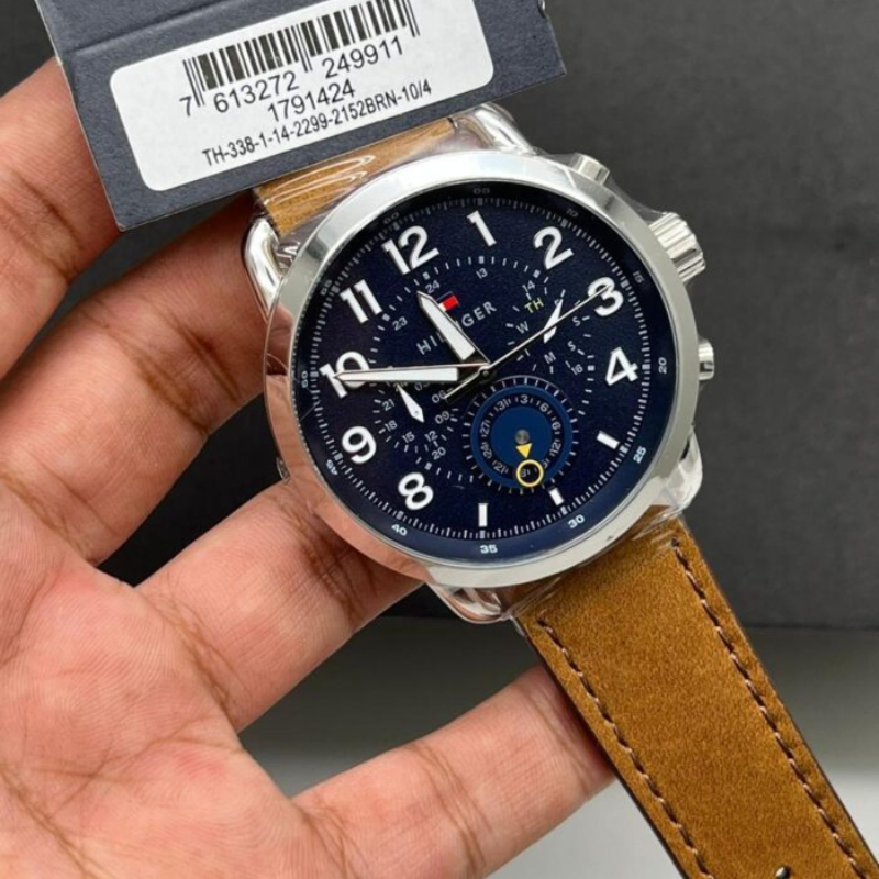 Tommy Hilfiger is the master of smart casual, preppy styleand all American charm. And this Briggs watch has all of those qualities inspades. It has a dark blue dial with luminescent hands, large numerals, andbranding at 12 o’clock. As classic as it is distinctive, the watch is fittedwith an elegant leather bracelet. Very comfortable Calf leather strap. Ascratch prove hardened, Mineral glass protects your watch from involuntaryinjuries.