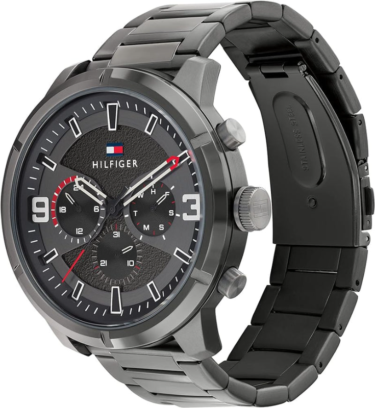 litry.This sophisticated timepiece features a sleek grey dial and is crafted with thefinest materials, making it suitable for any occasion. Upgrade your look withthis luxurious watch from Tommy Hilfiger