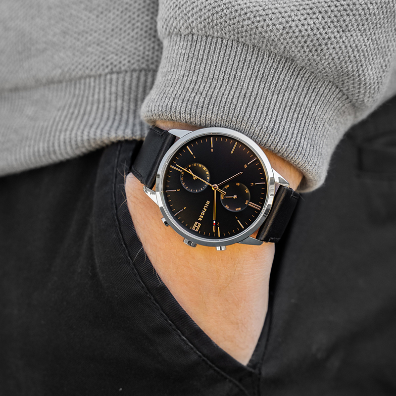 Aclassic leather belt TOMMY watch. This watch can withstand rain/minorsplashes, and cannot be used while swimming or showering. Brand TOMMYHILFIGER Collection HUNTER Color black Movement battery Waterresistance 30M/3ATM Crystal mineral Gender men's Type analog Weight 60 g STRAPMaterial leather Closure type pin buckle Size 16-21,5 cm Width 22-20 mm