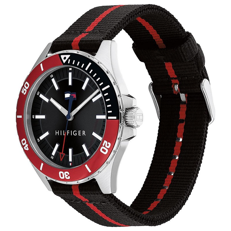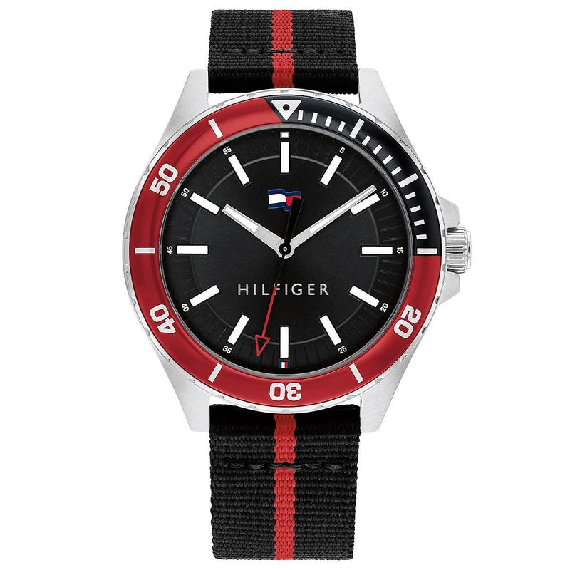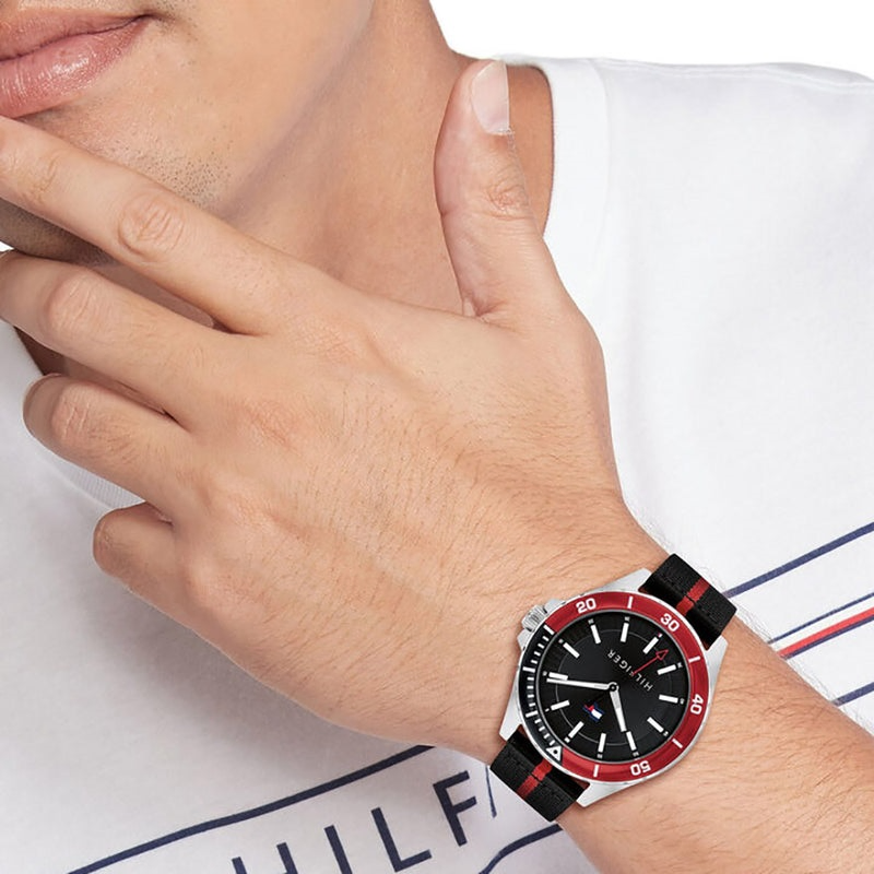 Indulgein the luxury of time with the Tommy Hilfiger Logan Black Nylon Strap Men'sWatch. This sophisticated timepiece features a sleek nylon strap and a classicdesign that is perfect for any occasion. With its elegant style and reliablefunctionality, this watch is a must-have for the modern gentleman.