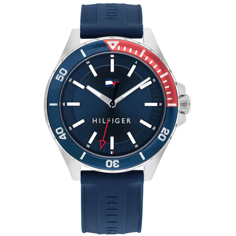 Thiselegant timepiece from Tommy Hilfiger boasts a luxurious blue dial and acomfortable silicone strap. The perfect accessory for any occasion, the Loganwatch combines style and functionality effortlessly. Treat yourself or someonespecial to a touch of sophistication with this premium watch.