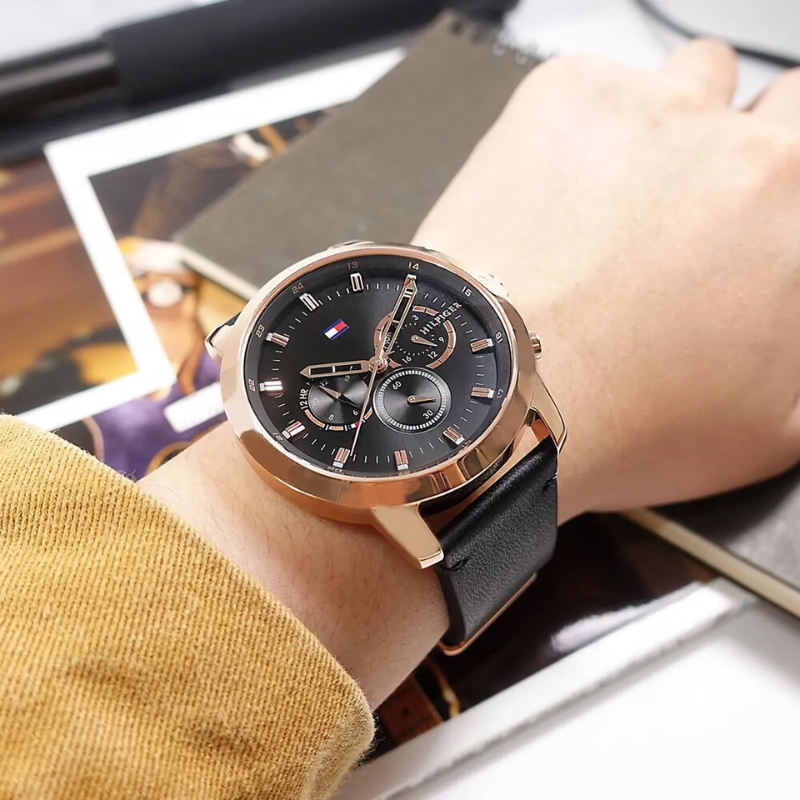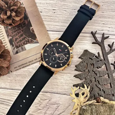 This classic watchgives a comfortable feeling with its leather strap, it is perfect for alloccasions. This multi-dial watch has a function: dual time, 24h display