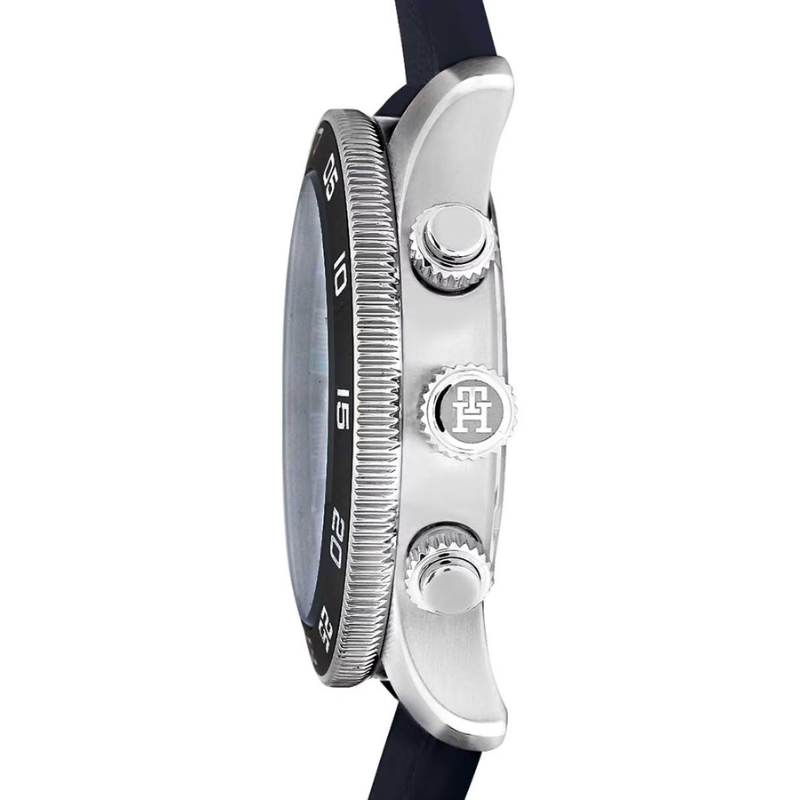 Tommy Hilfiger1792187 – Bold style meets function. Featuring a 41mm stainless steel case,quartz movement, blue dial, leather strap, and 5 ATM water resistance, thischronograph is built for fashion-forward individuals