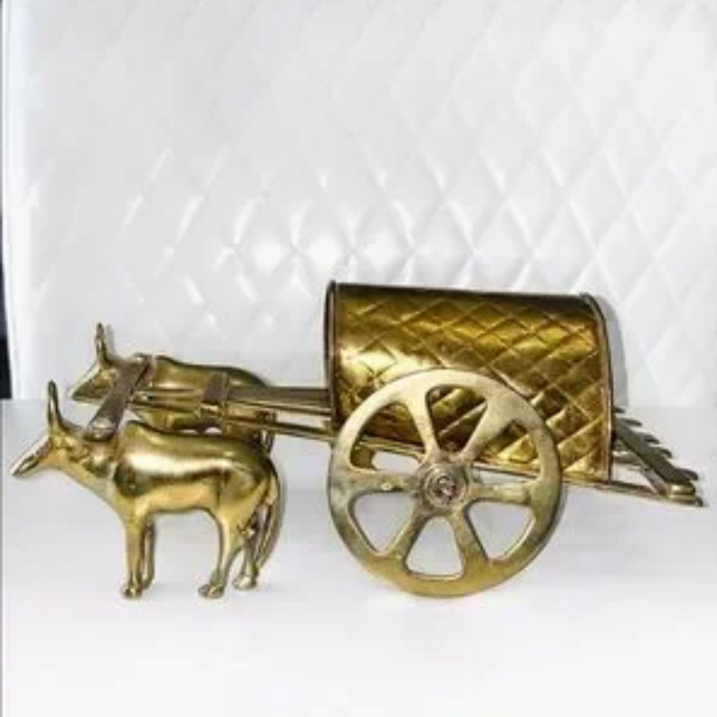 The Brass Bullock CartStatue offers a blend of traditional craftsmanship and elegant design. Its goldantique finish and detailed artistry make it a distinguished addition to anydecor, perfect for enhancing your home or serving as a memorable gift. Infuseyour space with traditional charm and elegance with the TATTVIK Brass BullockCart Statue. Featuring a stunning gold antique finish, this meticulouslycrafted showpiece celebrates cultural heritage and adds a touch ofsophistication to any home decor.